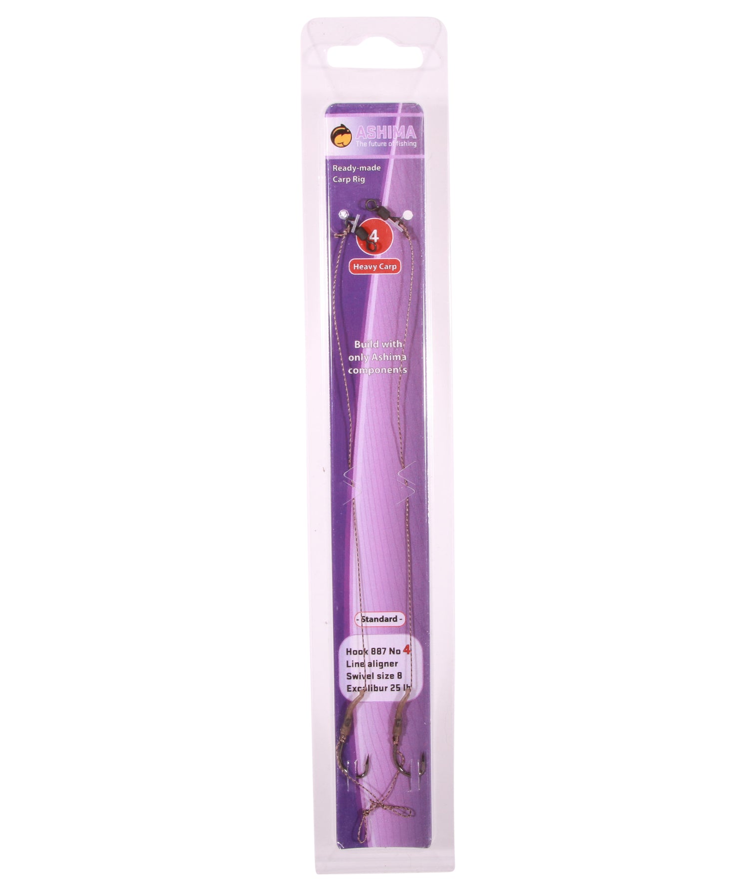 De Ashima Heavy Carp Profi Rig 887 is een hoogwaardige, kant-en-klare rig voor het vissen op karper. Deze rig is geknoopt met de 25lbs ground-hog gevlochten lijn van Ashima en bevat een C887 haak van Ashima voor optimale inhaking bij contact en houvast tijdens het drillen. Beschikbaar in verschillende haakmaten, deze rig is perfect voor het vissen met grond-aas en is verpakt per 2 stuks.