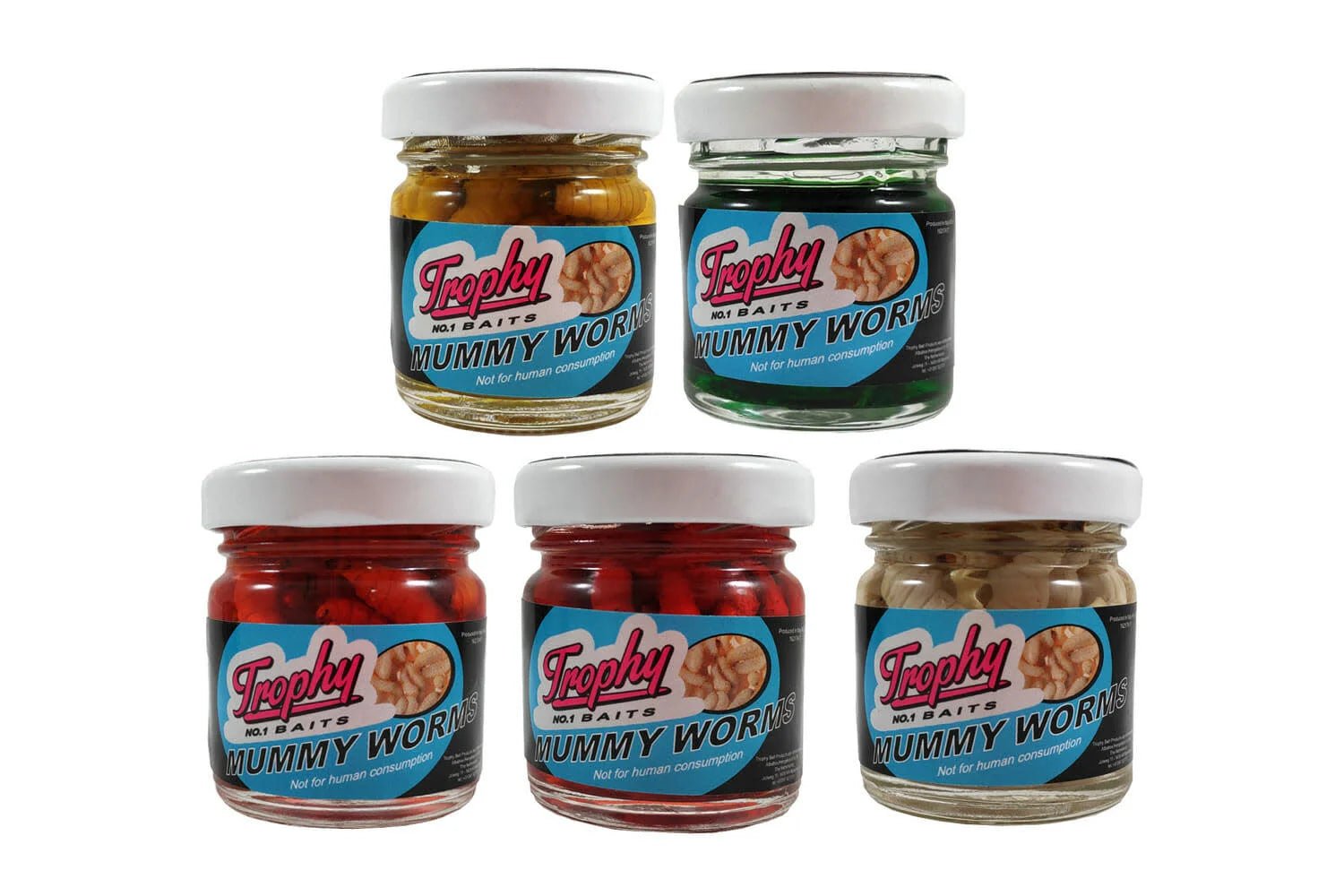 De Trophy Mummy Worms zijn echte wasmotten die perfect bewaard blijven in sterk water. Ze zijn dood maar super vers en behouden hun vorm, geur en aantrekkingskracht. Ideaal voor forel, witvis en andere vissoorten die niet kunnen weerstaan aan dit compacte, effectieve aas. Altijd klaar voor gebruik – handig mee te nemen en altijd betrouwbaar.