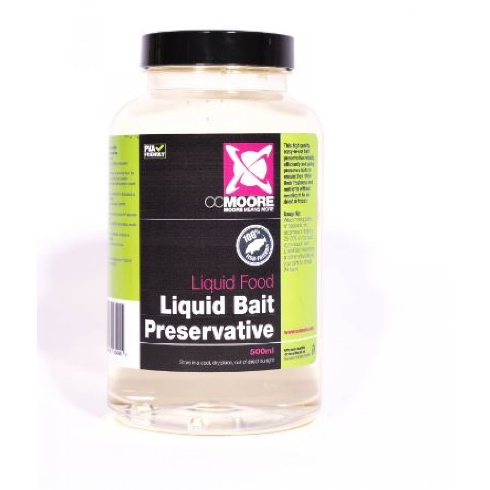 CCMoore Liquid Bait Preservative is een hoogwaardig vloeibaar conserveermiddel dat de groei van schimmels en bacteriën in zelfgemaakte aassoorten voorkomt. Dit conserveermiddel, gemaakt van ingrediënten van menselijke levensmiddelenkwaliteit, zorgt ervoor dat je boilies en deeg langer houdbaar blijven zonder koeling.