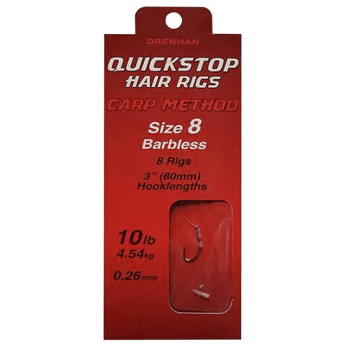 De Drennan Pushstop Hair Rigs zijn kant-en-klare nylon onderlijnen met een lengte van 3,5inch - 9cm zijn voorzien van een hair met Pushstop.