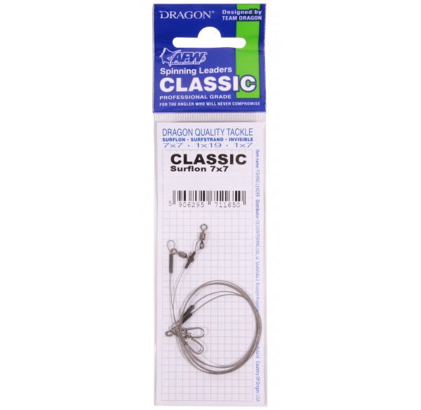 De Dragon AFW Surflon 7×7 Classic onderlijnen zijn met de hand vervaardigd uit hoogwaardig Surflon staaldraad van American Fishing Wire. Dankzij de zorgvuldige afwerking, waarbij de sleeves onder hoge druk met de juiste kracht worden vastgeknepen, bieden deze onderlijnen maximale betrouwbaarheid. De gladde nylon coating zorgt niet alleen voor extra soepelheid, maar ook voor een hoge kinkweerstand en een lange levensduur. Met de klassieke, sterke sluiting zijn ze ideaal voor het vissen op roofvissen met vlijmscherpe tanden, waarbij ze effectief lijnbreuk voorkomen.