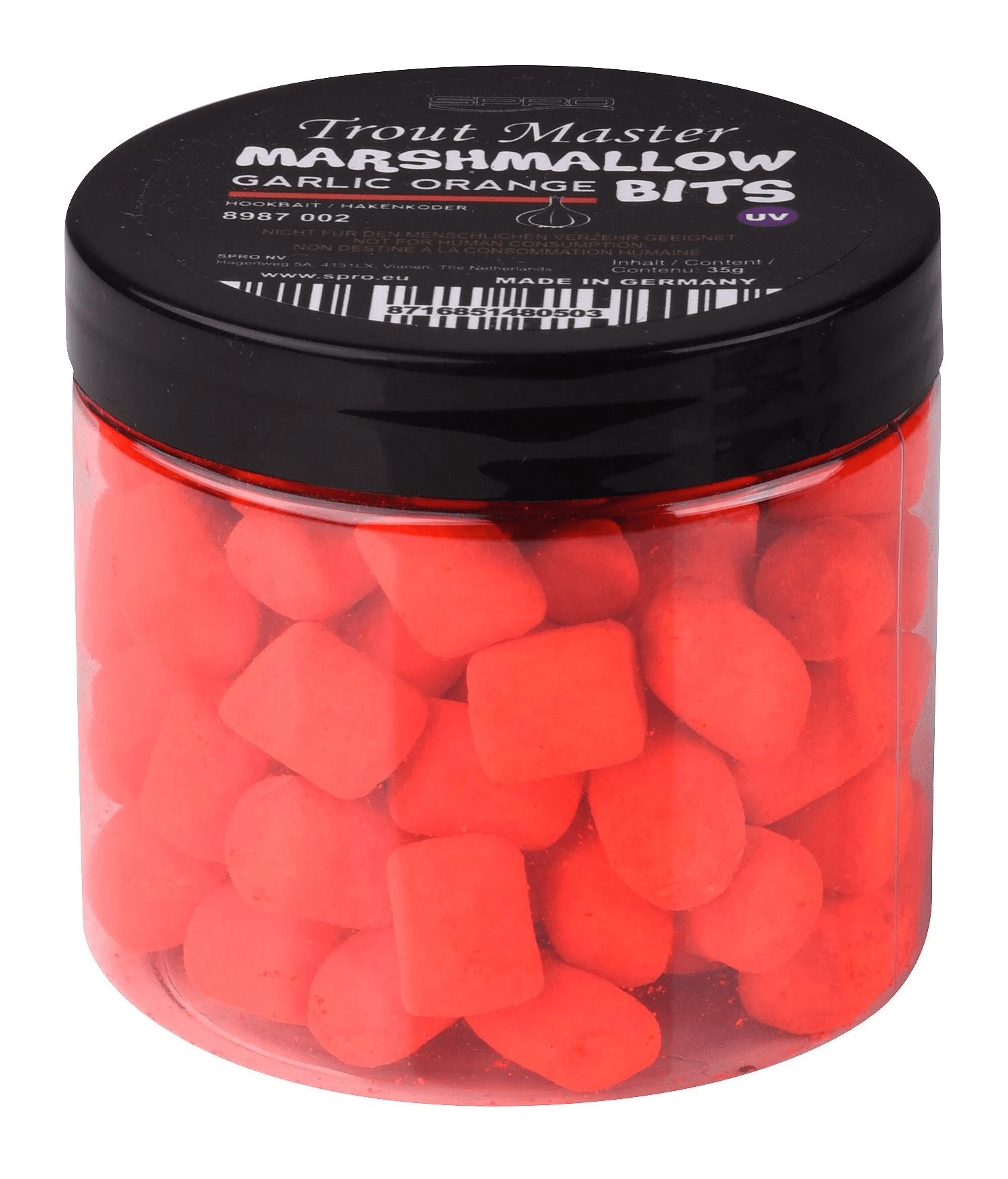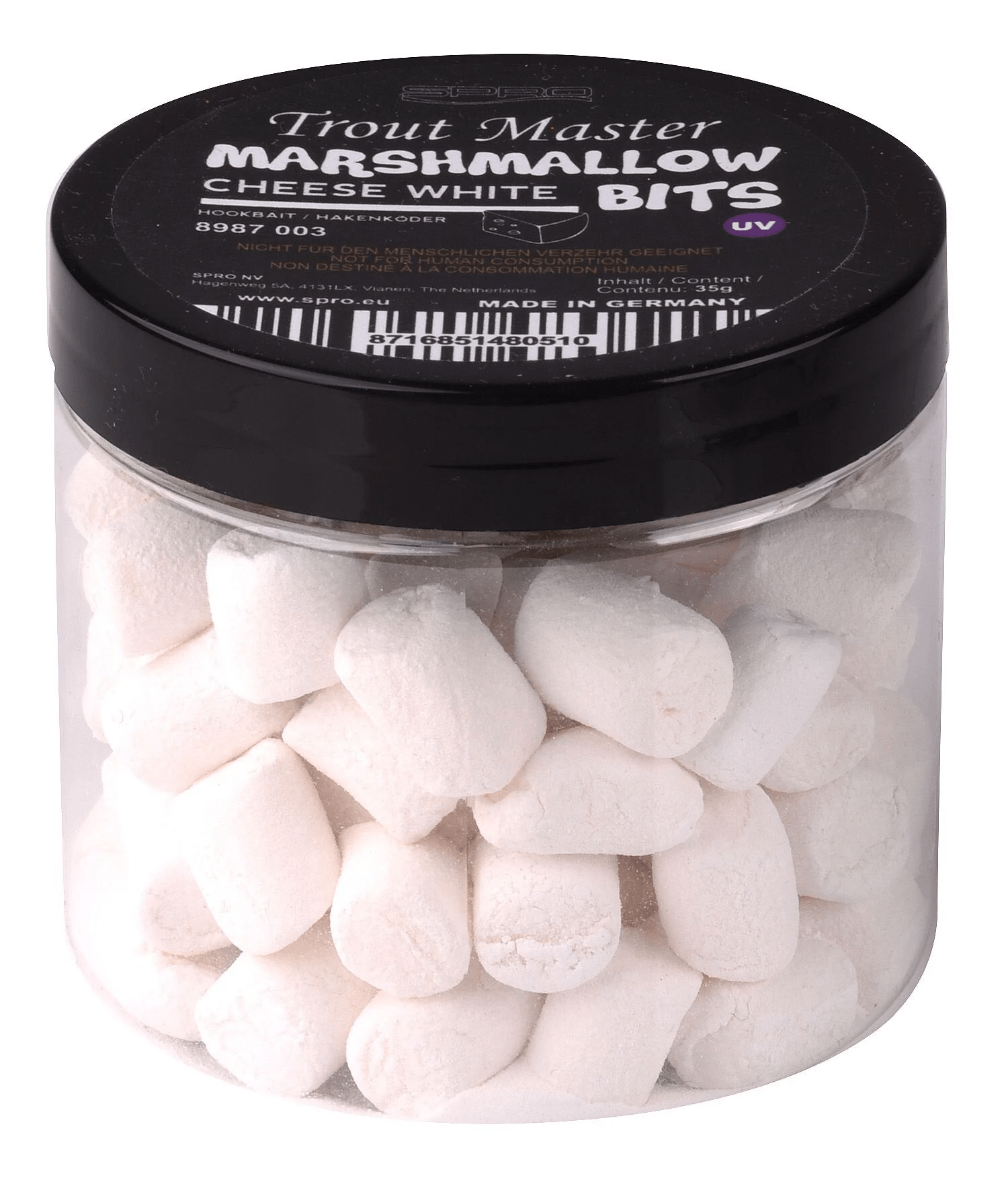 Trout Master Marshmallows zijn ontworpen om een uitzonderlijke aantrekkingskracht onder water te bieden. Deze marshmallow stukjes zijn opmerkelijk zacht en toch stevig genoeg om goed aan de haak te blijven. Hun hoge drijfvermogen maakt ze ideaal voor pop-up presentaties. Eenmaal in het water, lost de kleurrijke coating langzaam op, waardoor een opvallende en aantrekkelijke wolk rond het haakaas wordt gecreëerd. Deze UV-actieve, felgekleurde marshmallows zijn perfect voor het verleiden van vis, en elke verpakking biedt voldoende hoeveelheid voor meerdere vissessies.