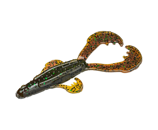 Deze creature bait is gemaakt van een zacht materiaal. Hierdoor is dit kunstaas erg bewegelijk en met de kleinste tikken zal dit aasje een mooie actie hebben. Dit aasje is makkelijk te riggen op een Offset Hook. Hierdoor kan dit aasje goed gevist worden op een vieze bodem. Door de grote staart en de zij armen zal dit aasje veel rumoer maken onderwater en hierdoor de roofvis goed aantrekken.