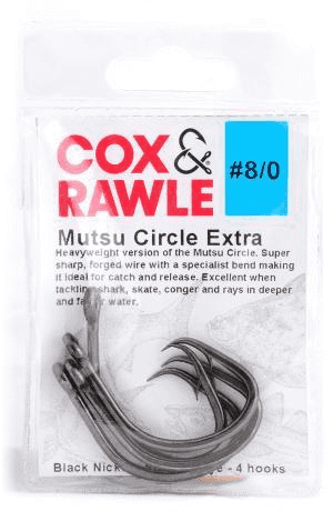 The Cox & Rawle SCR44 Mutsu Circle Hooks are super sharp, forged wire hooks that feature a specialist bend making it ideal for catch and release. These hooks atre the perfect size for smaller Plaice, Flounder, Dab and Bream. The larger siozes in this range are perfect for landing Rays and Tope.