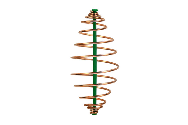 Dankzij het brede spiraalontwerp verspreidt het voer zich geleidelijk rond het aas, wat vissen actief naar je montage trekt. De kunststof buis in het midden zorgt voor een stabiele montage en maakt het mogelijk om de voerkorf schuivend op de lijn te gebruiken.