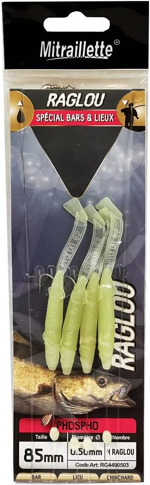 De Ragot Mitraillette Raglou is een kant-en-klare zeevismontage met meerdere Raglou softbaits, speciaal ontworpen voor het vissen op roofvissen zoals zeebaars en pollak. De montage bestaat uit meerdere kleine kunstaasjes die samen een schooltje aasvis imiteren. Dit zorgt voor extra aantrekkingskracht en verhoogt de kans op een aanbeet.