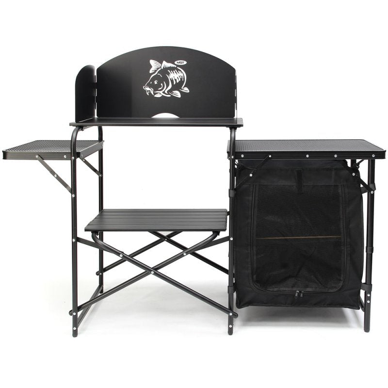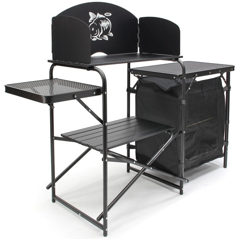 De NGT Prep Station biedt een perfecte combinatie van praktisch gemak, stabiliteit en compacte transportmogelijkheden, waardoor koken tijdens het vissen of kamperen een stuk comfortabeler wordt.