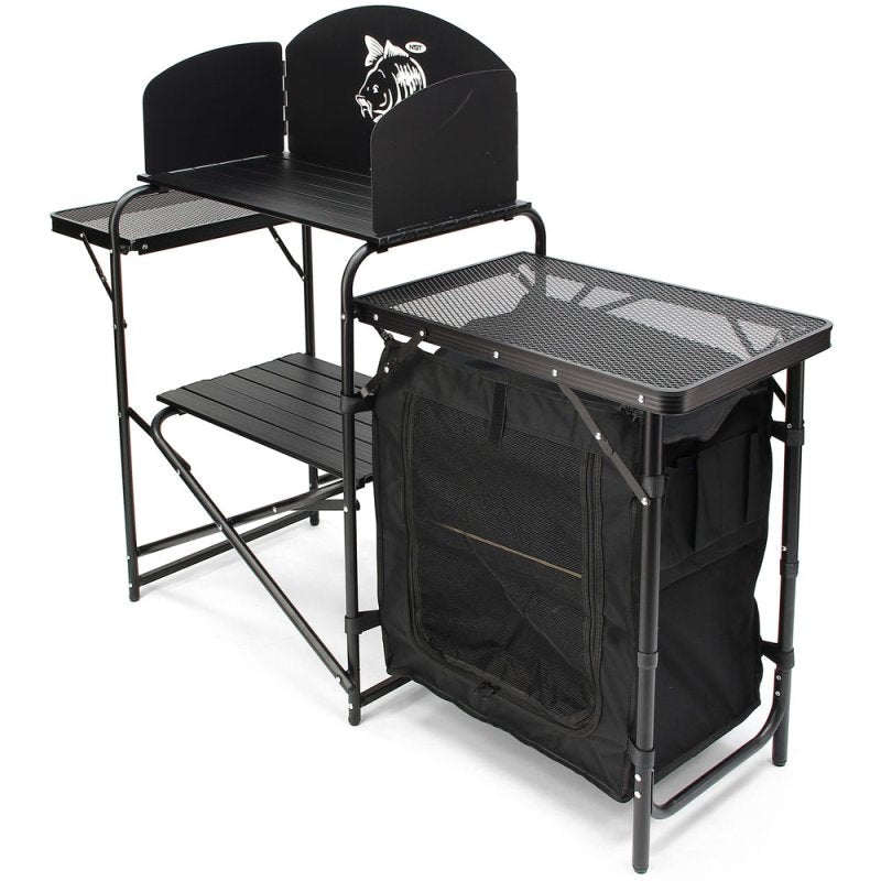 De NGT Kochstation 103 Prep Station is een praktische en compacte kook- en voorbereidingsstation, ideaal voor karpervissers, kampeerders en outdoorliefhebbers. Dit multifunctionele meubel zorgt ervoor dat je tijdens het koken aan de waterkant alles netjes georganiseerd en binnen handbereik hebt.