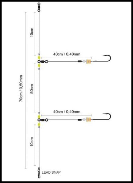 Dankzij de twee vlijmscherpe haken en het gebruik van dikke, slijtvaste lijnen is deze rig betrouwbaar en sterk, zelfs bij krachtige aanbeten. De slimme opbouw met wartels en een loodclip voorkomt in de knoop raken en maakt hem direct inzetbaar vanaf strand, pier én boot.