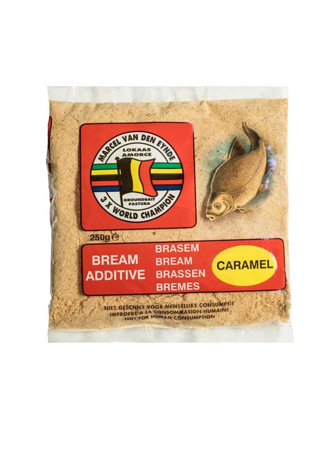 De Marcel Van Den Eynde Brasem Caramel is een krachtige poederadditief, speciaal ontwikkeld om brasem doelgericht naar je stek te lokken. De zoete karameltint werkt sterk prikkelend op grote witvis en verhoogt de aantrekkingskracht van elk grondvoer, zonder het natuurlijke karakter te verstoren.