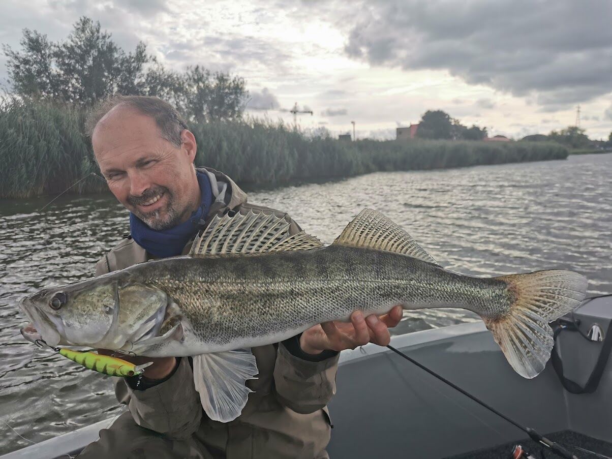 In the Dutch river region, we've caught exceptionally large fish, including pike up to 127cm, zander up to 95cm, and perch up to 52.5cm. Occasionally, we catch asp as bycatch, with our record being an impressive 86cm. There's a good chance you'll catch your personal best fish! Please note: after taking a quick photo, we carefully release every fish.